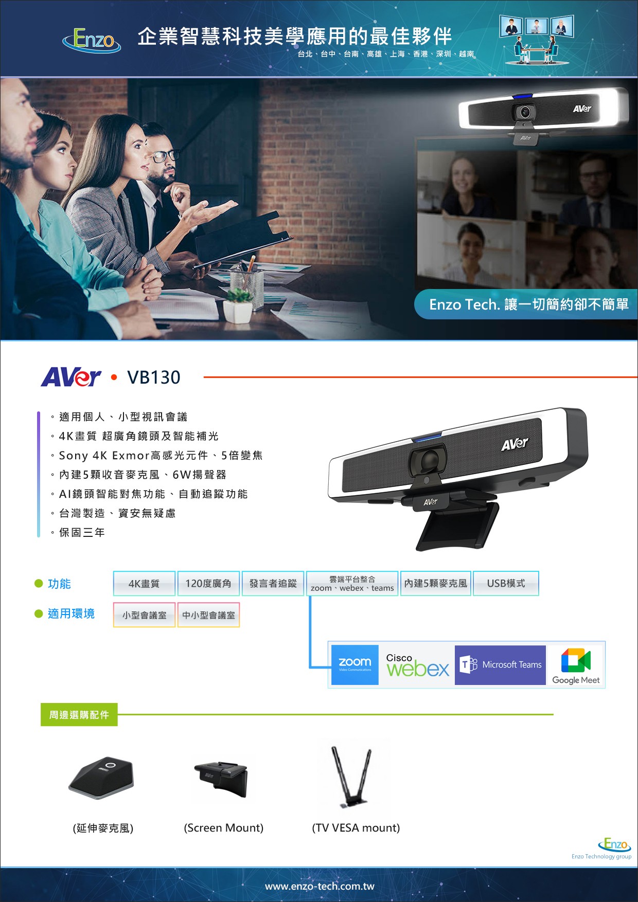 A:不用擔心!VB130 的補光燈設計非常人性化。首先,它有五段亮度可以調節,您可以調到最柔和的微光;其次,它的色溫可以自動適應環境(不會在暖光房間裡打出慘白的冷光)。如果您真的不想使用,也可以隨時透過遙控器或 AVer 的軟體將補光燈手動關閉。