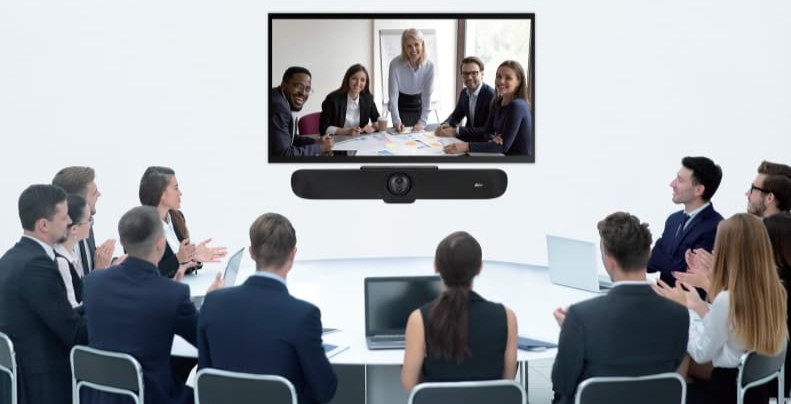 當會議室空間延伸至 8 到 15 人以上的中大型規模,長桌的縱深往往會成為視訊體驗的殺手。傳統的單鏡頭視訊音箱為了拍下全場,只能使用數位變焦強行放大,導致坐在遠處的主管臉孔變成模糊的馬賽克;若要改用專業的光學攝影機,又必須額外牽線佈置麥克風與喇叭,破壞了百萬級的會議室裝潢。