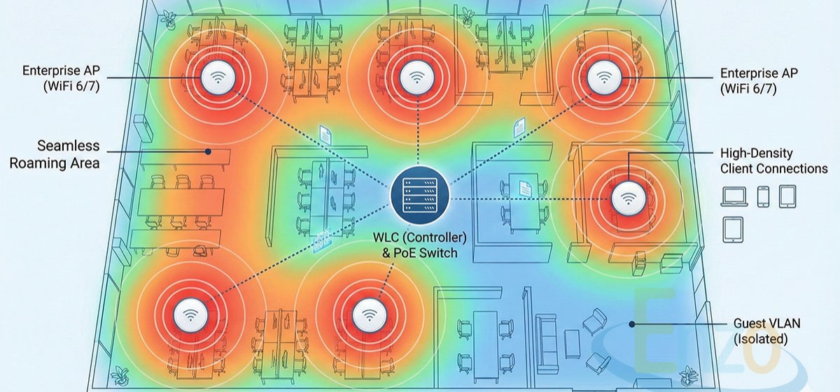 A:兩者皆有可能!企業網路是一個整體架構。如果您的源頭網路交換器 (Switch) 或防火牆效能不足,就算換了最新的 WiFi 7 AP 一樣會卡頓。恩左科技在規劃時,會為您進行全面的「網路健檢」,找出真正的效能瓶頸(Bottleneck),提供對症下藥的升級建議。