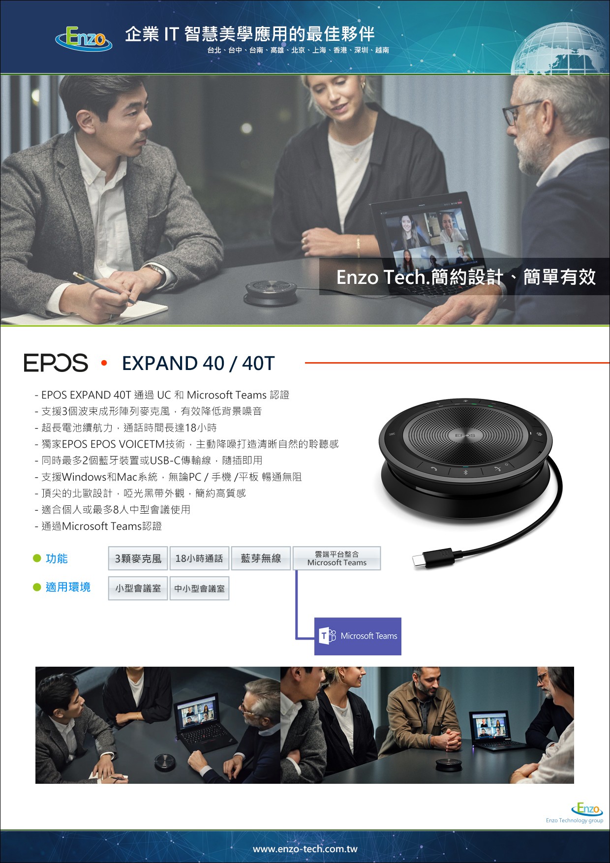 A: 非常適合。EPOS 源自 Sennheiser 的音訊技術,EXPAND 40 在播放音樂時會自動切換頻率響應至 20,000 Hz,提供飽滿的低音與清晰的高音,工作之餘也能享受高品質音樂。