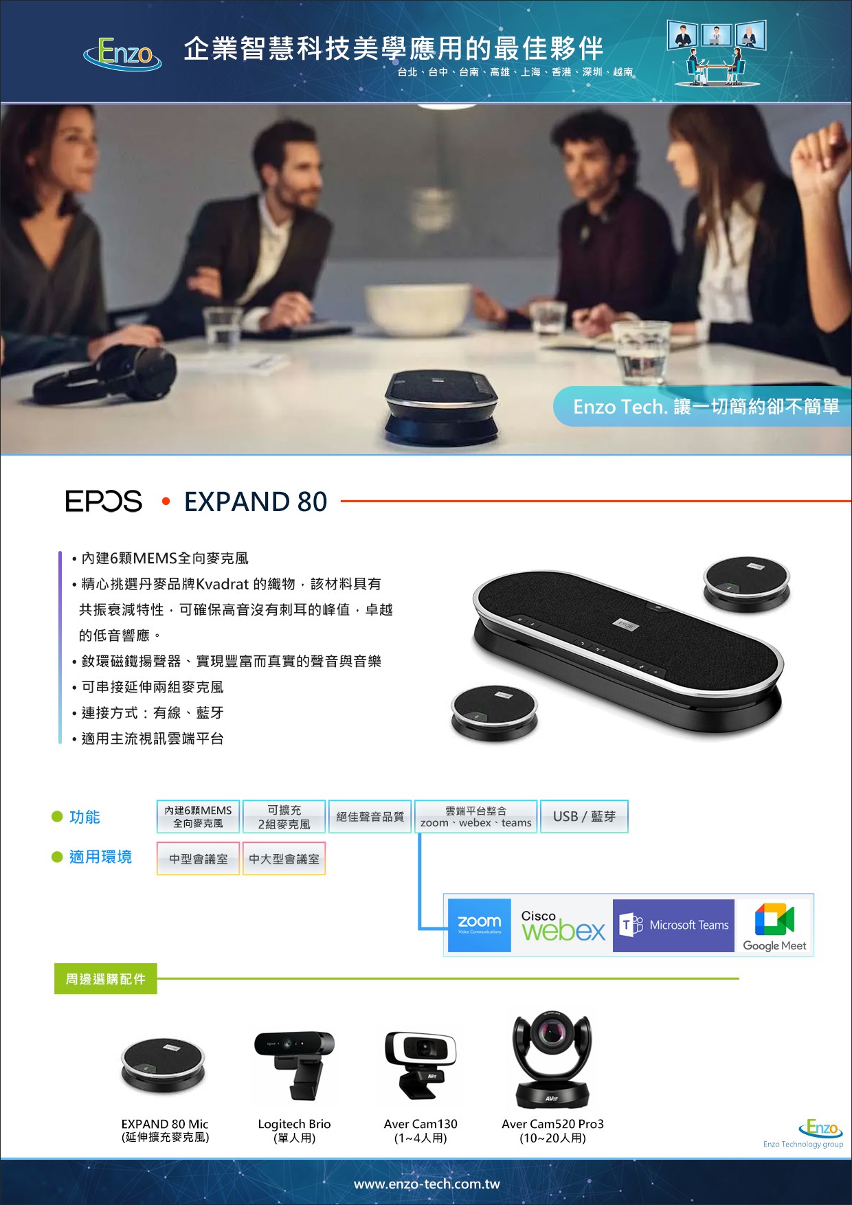 A: 兩者硬體規格與音質相同。80T 是經過 Microsoft Teams 認證 的版本,擁有專屬 Teams 按鍵與特殊的 LED 燈號邏輯;標準版 (80) 則適用於所有 UC 平台 (如 Zoom, Webex 等)。若貴公司主要使用 Teams,建議選擇 80T。