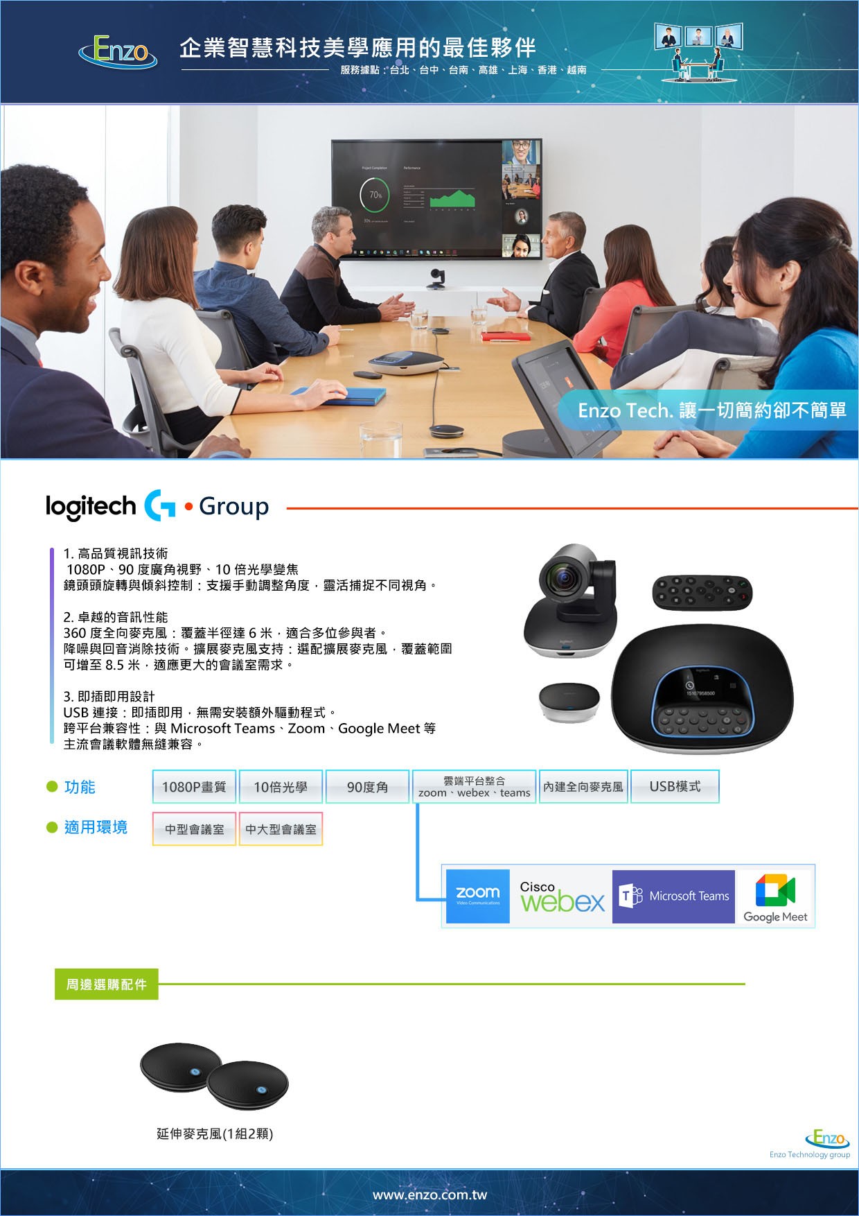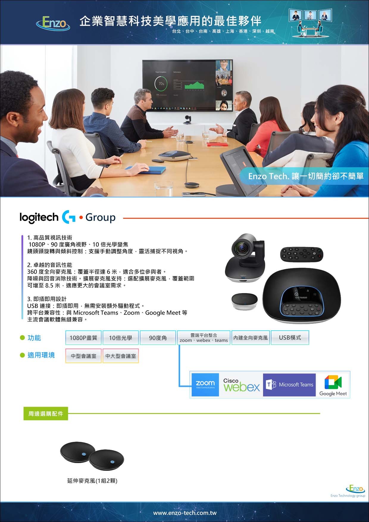 穩定耐用的專業視訊首選Logitech GROUP 是一款通過市場考驗的長青產品。它簡化了中大型空間的技術複雜度,讓您的團隊能專注於溝通而非設備設定。對於尋求穩定、專業且預算合理的企業來說,Logitech GROUP 是不容錯過的視訊基石。[立即提升您的視訊品質 - 線上諮詢] 想了解 Group如何與您現有的音響設備整合嗎?聯繫恩左科技,獲取專業視訊工程規劃建議。