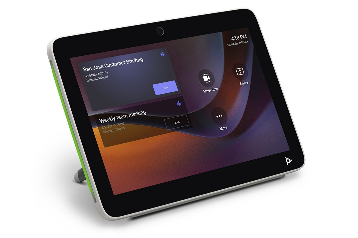 Poly TC10 完美整合 Teams Rooms 控制介面。除了開會,平時掛在門口還能作為 Teams 面板 (Teams Panel),顯示會議室佔用狀態(紅燈/綠燈),避免開會被打擾。