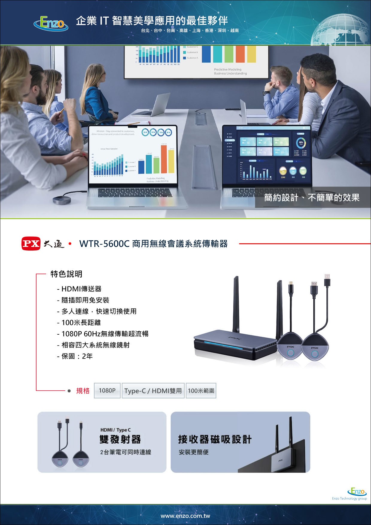 A:WTR-5600C 的 Type-C 介面採用硬體影像傳輸技術。您的筆電、平板或手機的 Type-C 連接埠必須支援 「DisplayPort Alternate Mode (DP Alt Mode 影像輸出)」 功能才能正常使用。市面上絕大多數的 MacBook、iPad Pro 及中高階 Windows 筆電均有支援。