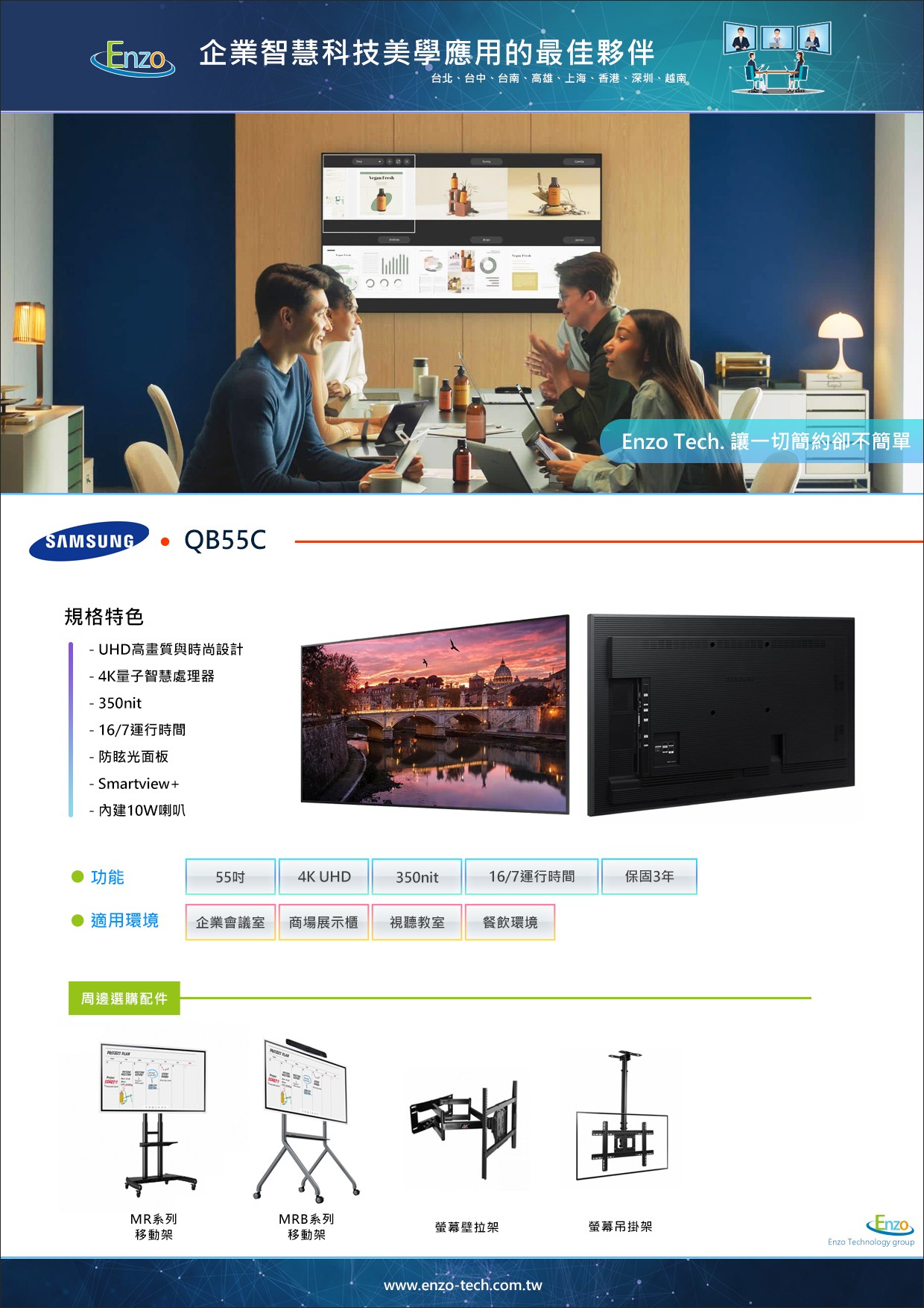 展現專業,從高品質顯示器開始Samsung QB55C 不僅提供視覺盛宴,其優雅的工業設計更為企業省下了繁瑣的佈置成本。如果您正在尋找一台既能精準呈現色彩,又能完美貼合牆面的顯示器,QB55C 無疑是目前的頂尖方案。[立即索取 Samsung QB55C 專案報價]想了解更多關於三星商用顯示器的安裝建議嗎?恩左科技提供專業的顯示方案規劃,讓您的商業空間煥然一新。