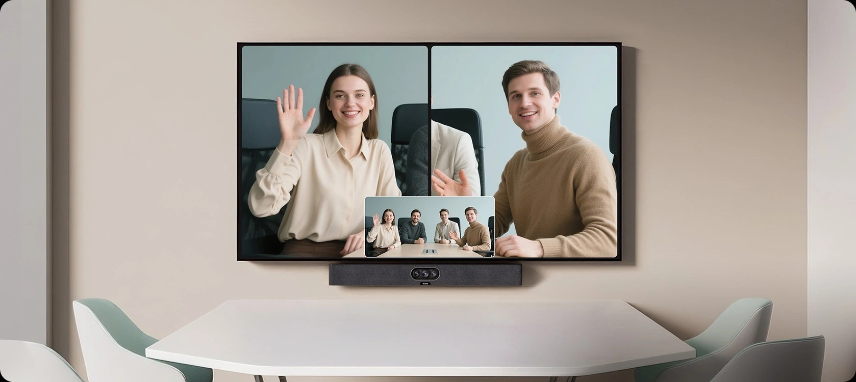 內建 AI 智慧取景與自動構圖功能,可依照與會人數即時調整畫面,確保每位與會者清楚入鏡,讓遠端參與者擁有接近實體會議的臨場感。
