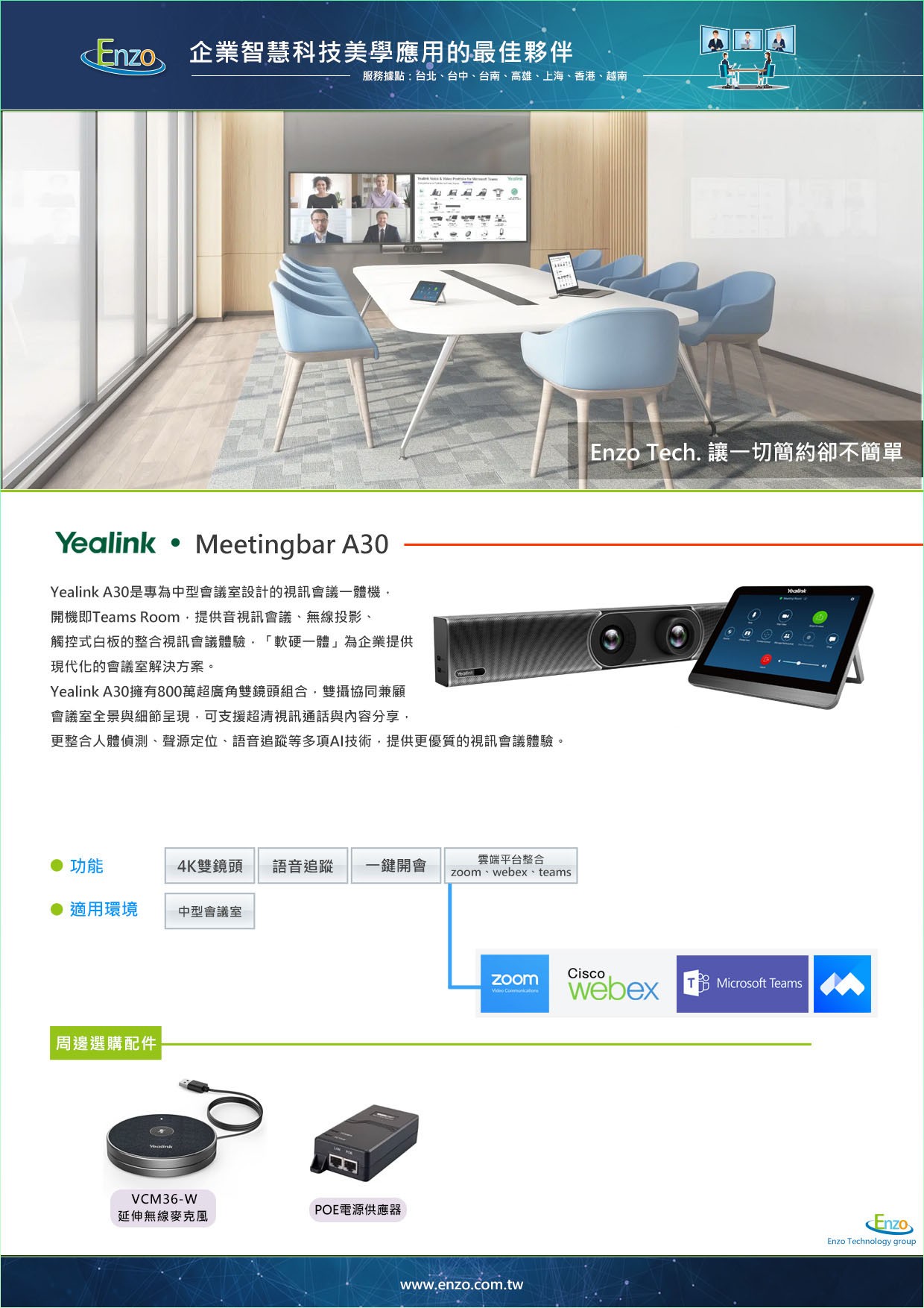 Q: Yealink A30 適合多大的會議室?