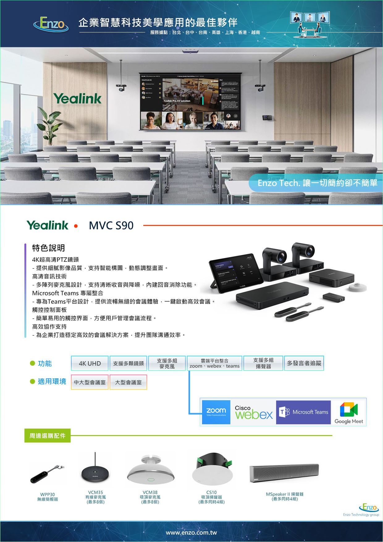 當會議空間擴大至 20 人以上,或是長度超過 10 公尺的培訓教室時,單一視訊鏡頭往往難以捕捉所有角落。Yealink MVC S90 的出現,正是為了打破大型空間的視覺限制,提供一套完整的 Microsoft Teams Rooms (MTR) 旗艦級解決方案。