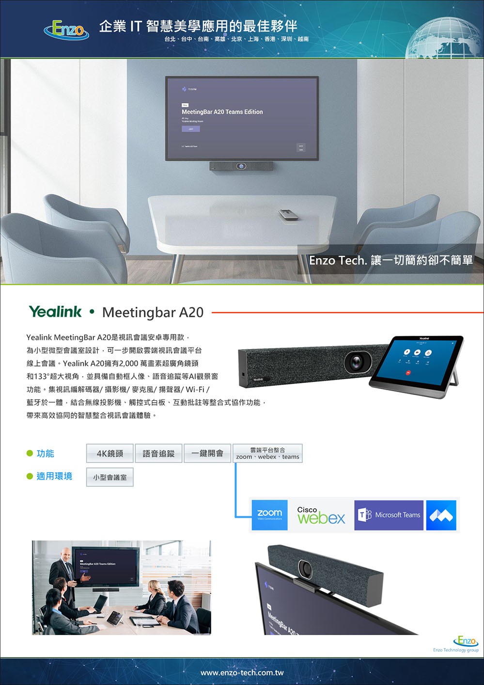 Yealink MeetingBar A20 - 小型會議室的全方位視訊解決方案